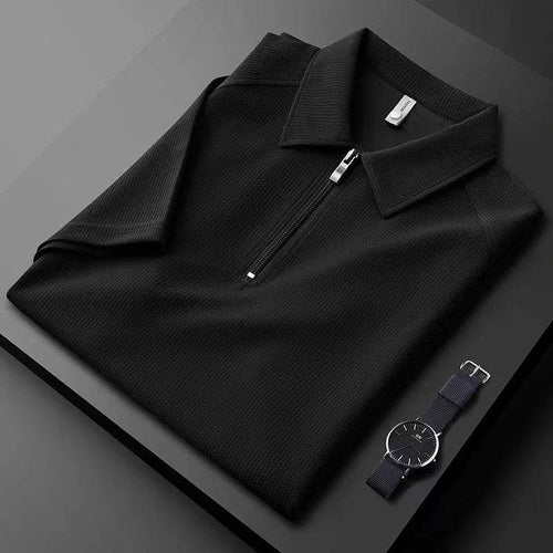 Light Luxury Summer Thin Bubble Fabric Half Zipper Polo Shirt Men's Short Sleeve Lapel T-shirt