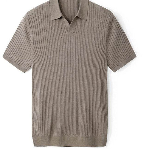 Men's Ice Silk Knitted Trendy Niche Contrast Color Lapels Short Sleeve