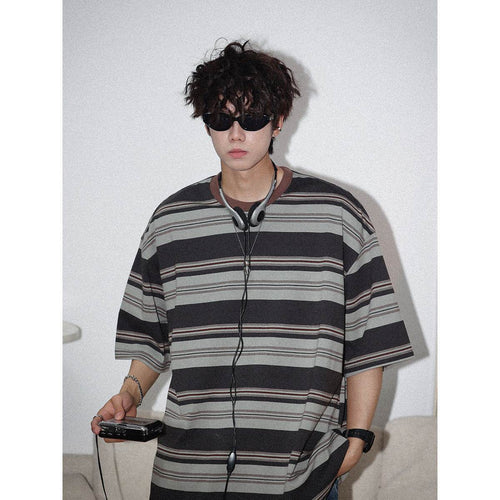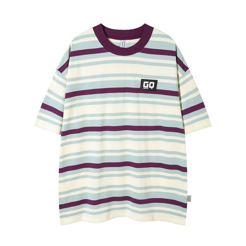 Vintage Stripe Niche Couple Loose Half-sleeve Top