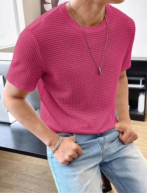 Men's Knitted Half Neck Hollow Short Sleeve Cotton T-shirt