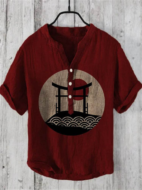 3D Digital Thermal Transfer Button Stand Collar Short Sleeve Shirt