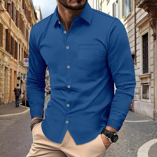 Men's Long Sleeve Fashion Stitching Business Casual Lapels Shirt