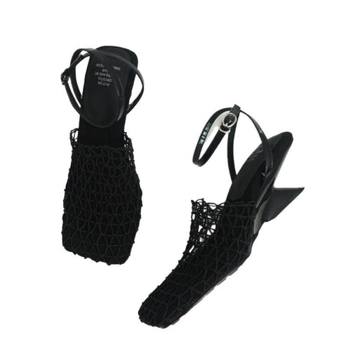 Chunky Heel High Hollow Peep Toe Sandals