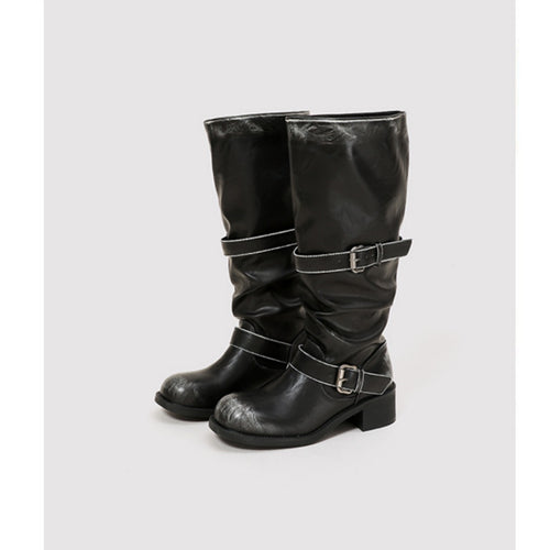 Retro Chunky-Soled High-Cut Equestrian Boots For Women