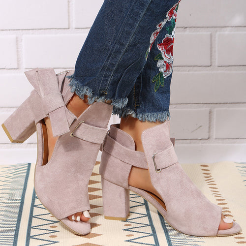 Face Buckle Chunky Heel High Heel Sandals Female