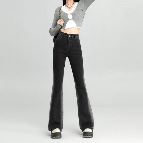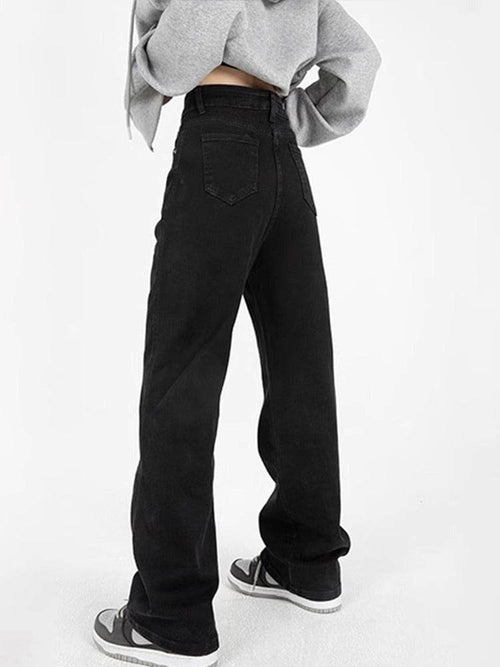 Plus Size Straight Black Jeans High Waist Wide Leg Pants