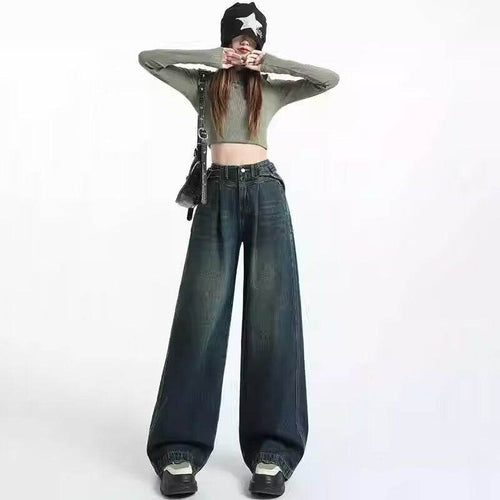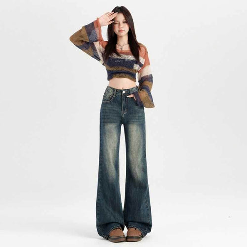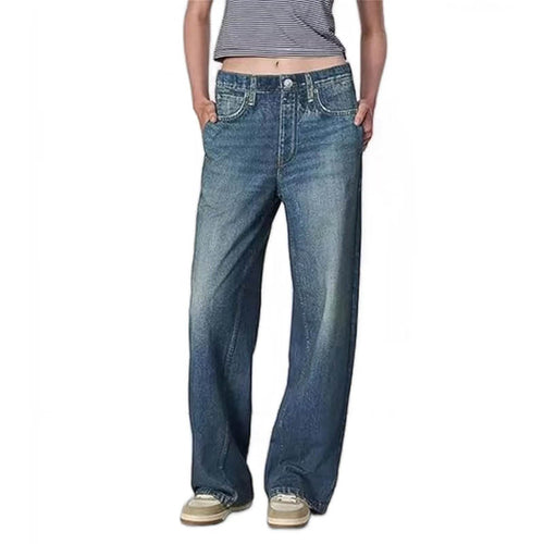 Autumn Retro Loose Low Waist Straight Jeans For Women