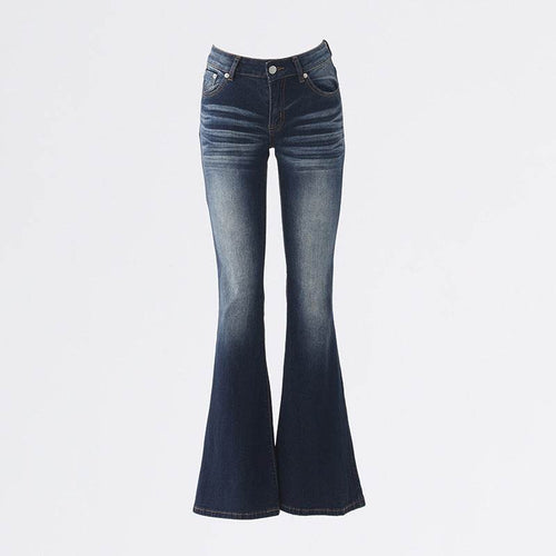 Women's Straight Jeans Dark Blue Embroidered Letters