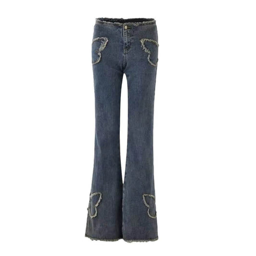 Female Butterfly Embroidered Slim Fit Retro Jeans