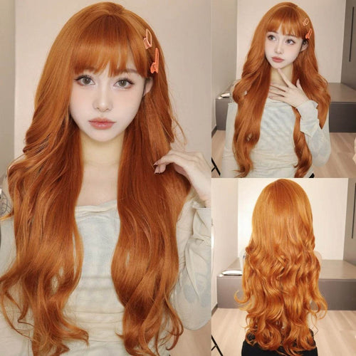 Long Curly Wig Head Cover Natural Black Bangs Big Wave Wig