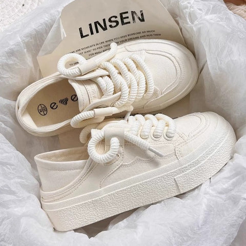 Platform Canvas White Shoes Casual Sports