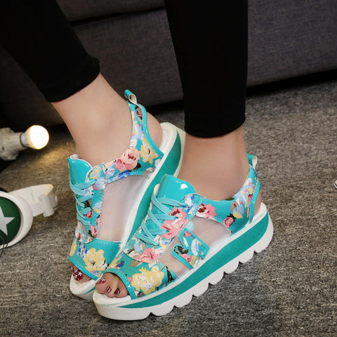 Roman Shoes Fish Mouth Floral Mid-Heel Platform Platform Sandals