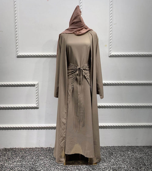 Middle East Muslim Embroidered Robe Abaya Light Luxury Evening Gown Two-piece Set Dress