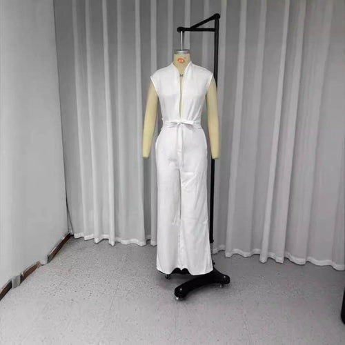 Elegant Temperament Pure Color High Waist Slimming Lace-up Wide Leg Jumpsuit
