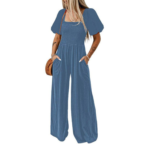 Women's Square Collar Short Sleeve Jumpsuit